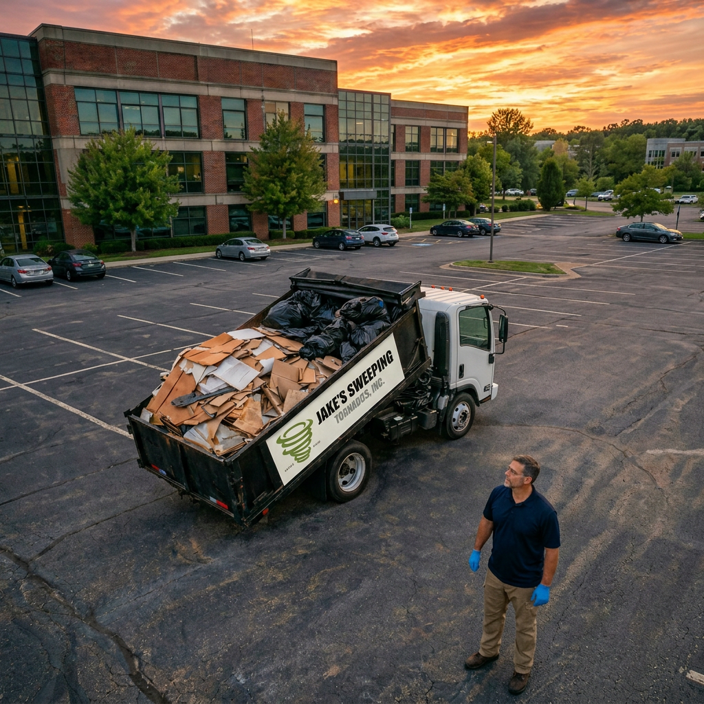 Vacant properties unfortunately seem to be a magnet for trash, junk, and other debris. Let Jake’s Sweeping Tornados perform a thorough site cleanup and haul it all away for proper disposal.